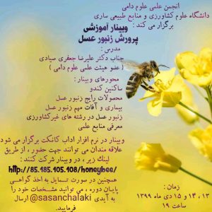 انجمن علمی علوم دامی کارگاه آموزشی زنبور عسل با سخنرانی دکتر جعفری عضو هیپت علمی گروه علوم دامی دانشگاه برگزار می کند. علاقه مندان از طزیق لینک مندرج در تصویر می توانند در این پبینار آموزشی شرکت کنند. به شرکت کنندگان گواهی حضور داده می شود.