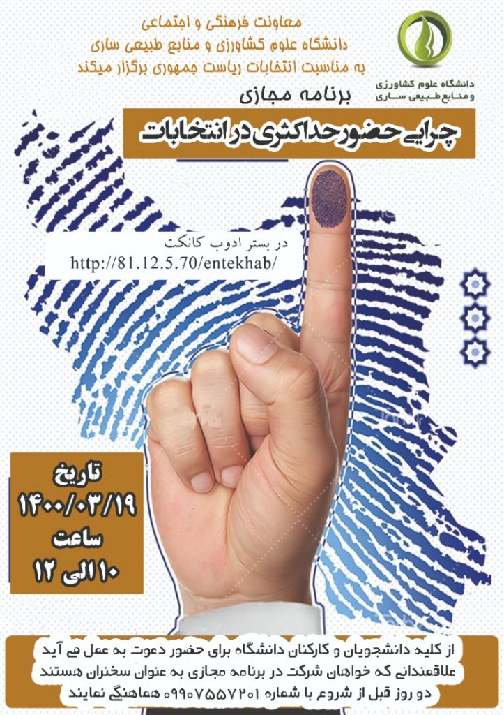 معاونت فرهنگی و اجتماعی دانشگاه علوم کشاورزی و منابع طبیعی ساری به مناسبت انتخابات ریاست جمهوری برگزار می کند.